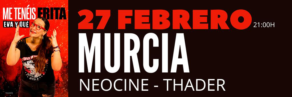 Disfruta el próximo Viernes 27 de Febrero 2026 de «Me tenéis frita» de Eva y Qué en Murcia. Show en vivo y en directo dentro de Monólogos en el Cine.