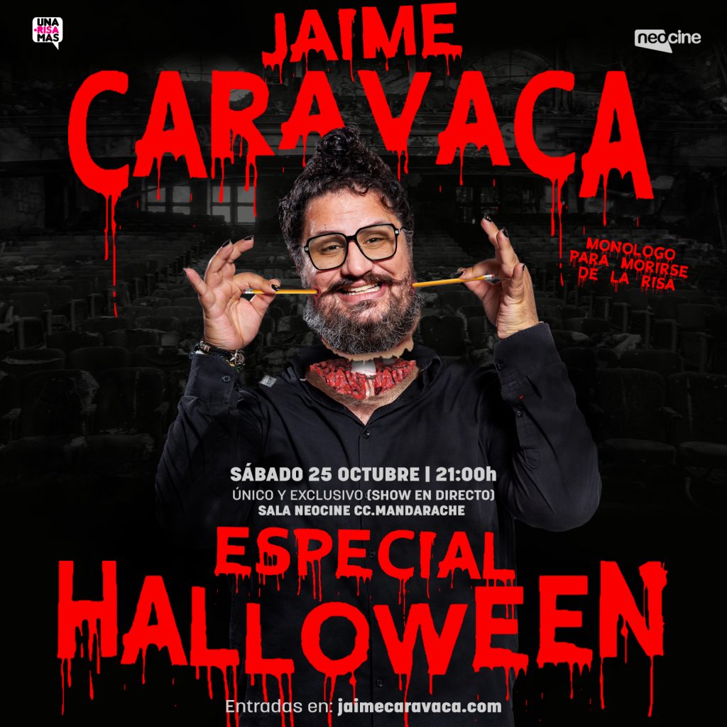 Ven a disfrutar del Monólogo Especial de Halloween de Jaime Caravaca en Cartagena, en los cines Neocine de CC.Mandarache , el próximo Sábado 25 de Octubre. Podrás disfrutar de una noche de comedia terrorífica, única y en exclusiva para los asistentes.